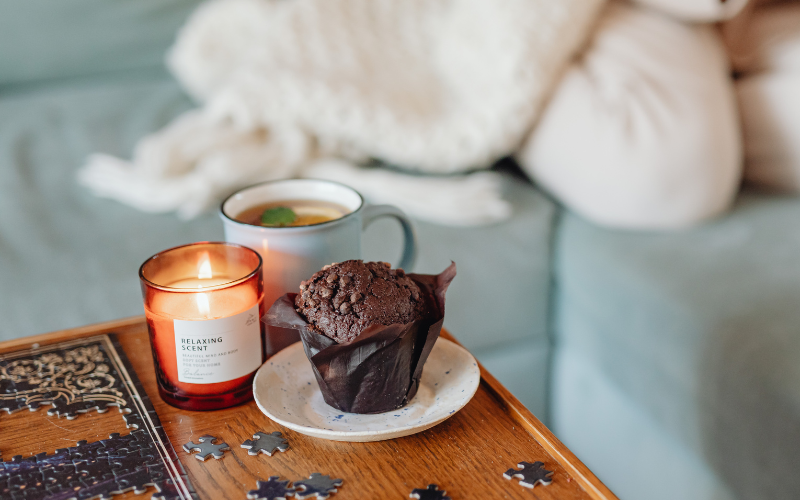 It could be a chair by the window where you read, a corner of your bed with cushions where you journal, or a small table where you drink your morning coffee. This becomes your personal cozy zone, a place that feels safe, slow, and yours.