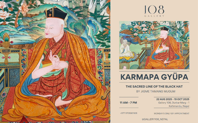 Gallery 108 has opened its doors to Karmapa Gyüpa: The Sacred Line of the Black Hat, a remarkable exhibition of thangka paintings by artist Jigme Tamang Mugum. Running from August 22 to October 19, 2025, the exhibition offers visitors a rare opportunity to journey through the unbroken lineage of the Karmapas, the spiritual leaders of the Karma Kagyu tradition of Tibetan Buddhism.