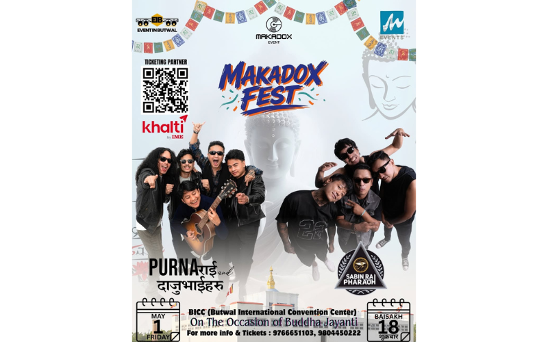Headlining the festival are two of Nepal’s most beloved musical acts: Purna Rai & Daju Bhaiharu and Sabin Rai & The Pharaoh, bringing together a dynamic mix of soulful melodies and high-energy rock anthems. With both artists known for their strong fan following and engaging live performances, Makadox Fest is expected to draw crowds from across the region.