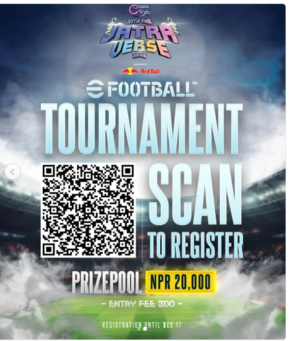 The tournament features a total prize pool of NPR 20,000, offering local gamers a competitive platform to showcase their football gaming skills. Interested participants can register by scanning the QR code shared in the official event announcement. The entry fee is NPR 300, and registrations remain open until December 17.