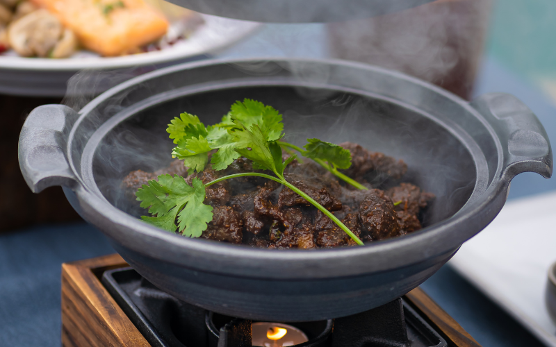 Head Chef Sukhi Ram Mahto of Barahi Jungle Lodge brings the bold, earthy flavors of Chitwan to the table with his signature dish, Mutton Pakku. Grounded in traditional cooking methods and slow-simmered to perfection, this dish celebrates the depth of mustard oil, fragrant spices, and tender mutton. The result is a rich yet balanced flavor profile that reflects the soul of jungle cuisine, where patience, authenticity, and simplicity take center stage.