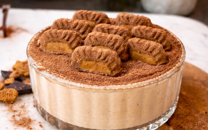 • Optional espresso: Some creative twists involve soaking the biscuits in espresso to create a subtle coffee flavor, giving it a tiramisu‑like edge.