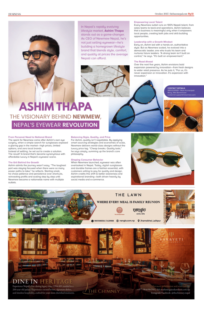 In Nepal’s rapidly evolving lifestyle market, Ashim Thapa stands out as a game-changer. As CEO of NewMew Nepal, he’s not just selling eyewear – he’s building a homegrown lifestyle brand that blends style, comfort, and quality at prices the average Nepali can afford.