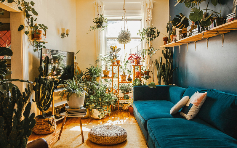 Plants visually enlarge a room, improve air quality, and add a calming presence. For Nepali studios, choose low-maintenance varieties that tolerate variable light and occasional neglect: money plant, snake plant, ZZ plant, and small palms. These are commonly recommended for urban households and are readily available locally.