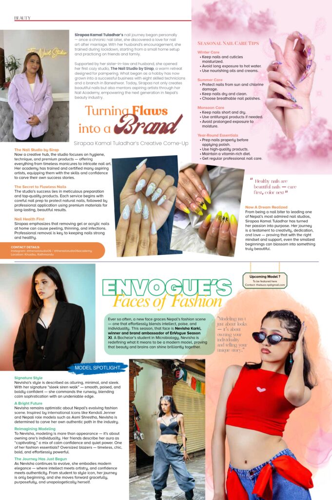 From being a nail biter to leading one of Nepal’s most admired nail studios, Sirapaa Kamal Tuladhar has turned her passion into purpose. Her journey is a testament to creativity, dedication, and love: proving that with the right mindset and support, even the smallest beginnings can blossom into something truly beautiful.