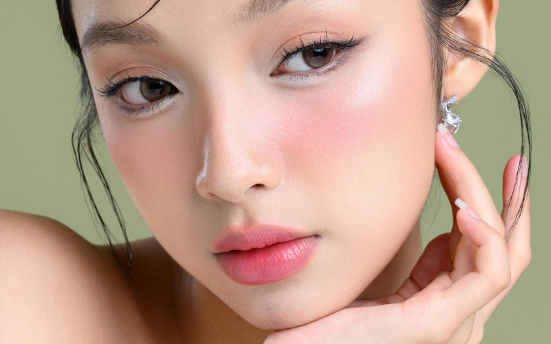 A cream blush in rosy pink or soft peach instantly creates a youthful, romantic glow. Apply it to the apples of your cheeks and blend upward for a lifted effect, with a subtle touch across the bridge of the nose for a naturally flushed finish. This technique enhances warmth and adds softness to the overall look.