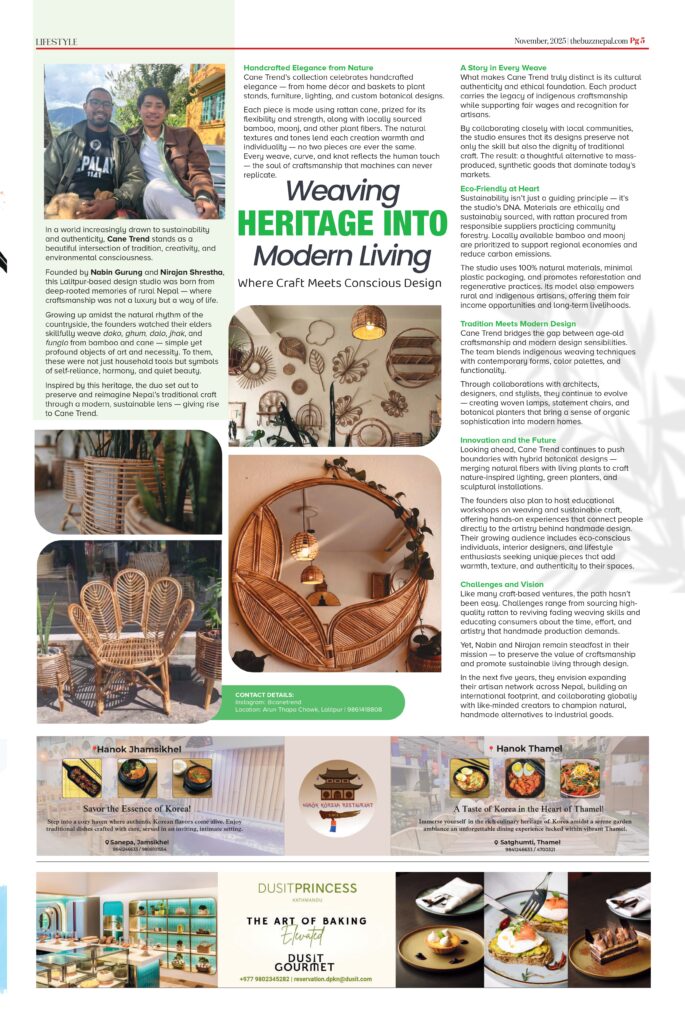 Inspired by this heritage, the duo set out to preserve and reimagine Nepal’s traditional craft through a modern, sustainable lens — giving rise to Cane Trend.